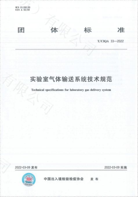 《实验室气体输送系统技术规范》T/CIQA33-2022集中供气标准编写单位